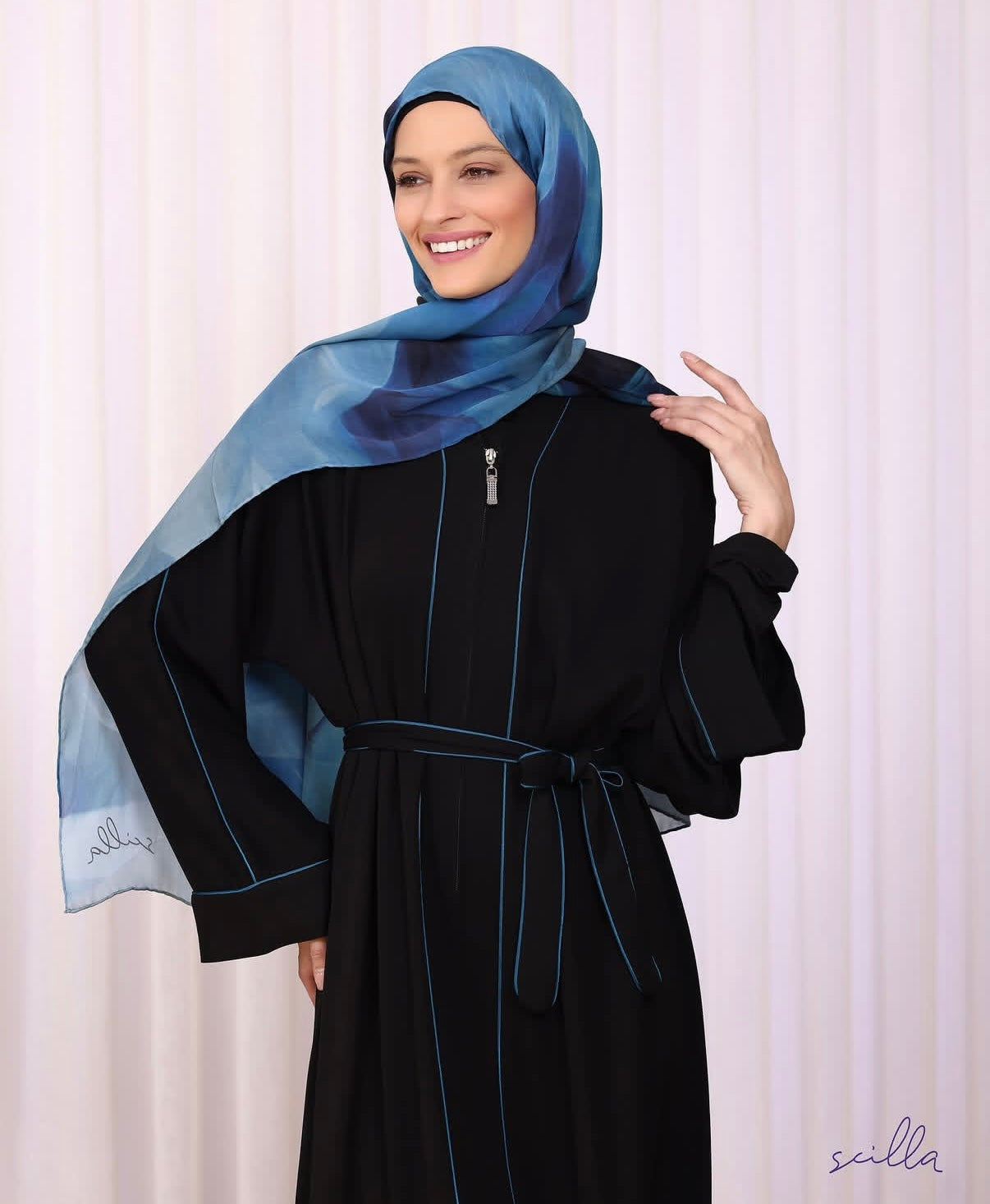 عباية سوداء بسحاب وخط أزرق